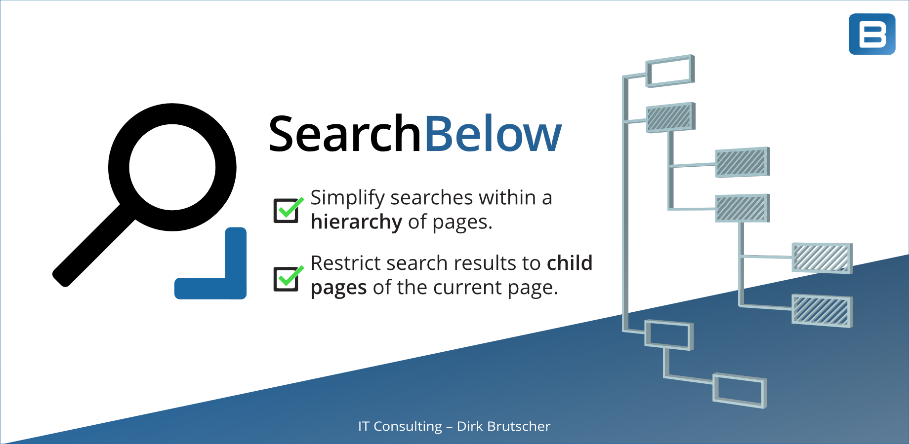 "SearchBelow" ist ein Plugin für das Enterprise Wiki System "Confluence" der Firma Atlassian. Die Erweiterung vereinfacht die Suche innerhalb von Seitenhierarchien und ermöglicht die direkte Suche unterhalb der aktuellen Confluence Seite. Der Vertrieb erfolgt über den Marketplace der Firma Atlassian.